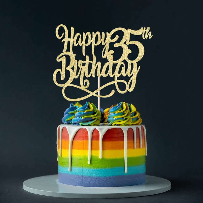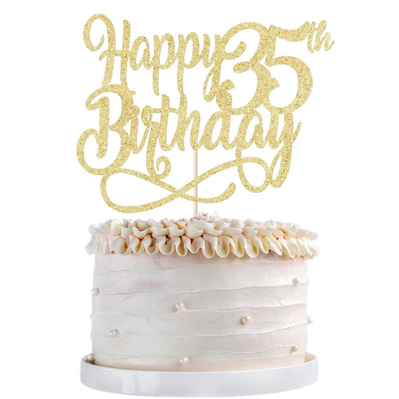- El paquete incluye: recibirás una decoración de pastel de feliz cumpleaños 35, esta delicada decoración para tartas es el complemento perfecto para tu fiesta de cumpleaños 35 y añade alegría a tu fiesta temática. También se puede utilizar como accesorio para fotomatón.