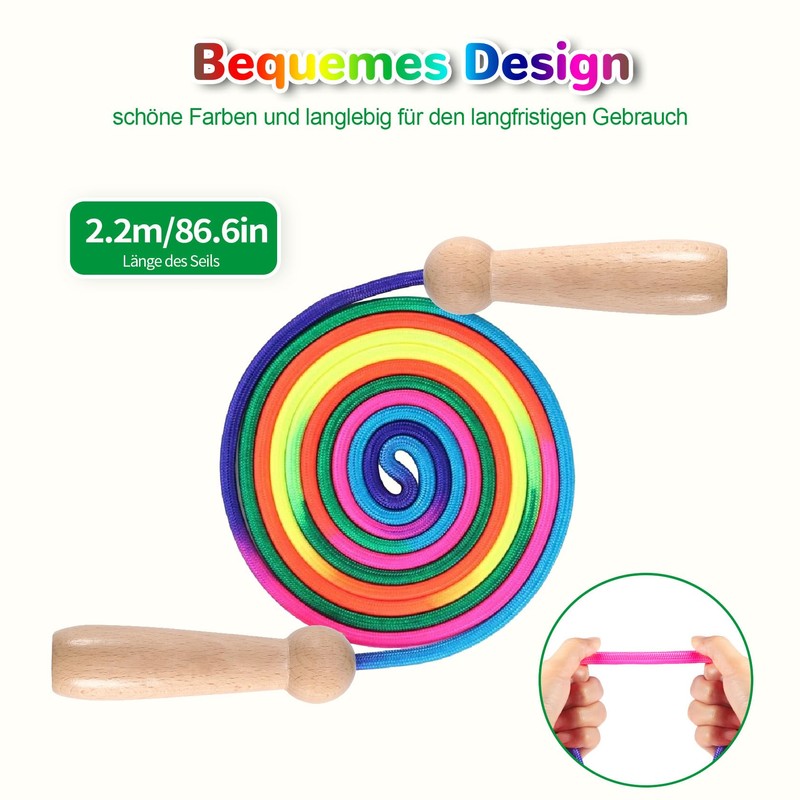 Qetlavee Children's Skipping Rope, 220 cm Adjustable Rope Skipping Rope with Wooden Handle, Skipping Rope 7 Colours Rainbow, Skipping Rope for Children from 6 7 8 9 10 Years