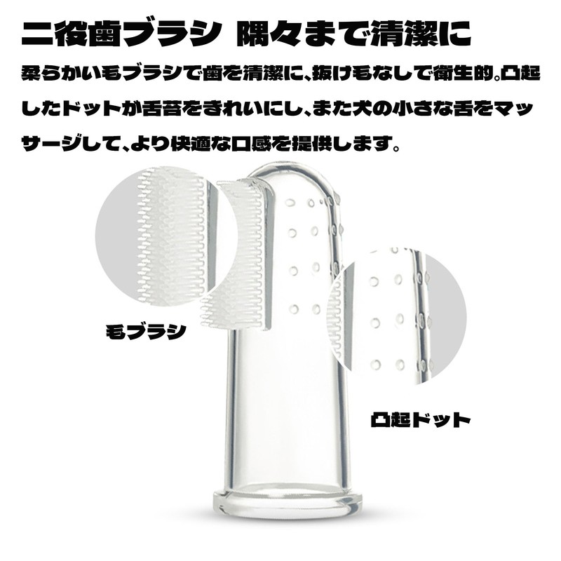 - 【2WAYデザイン】ペット指 歯ブラシ 柔らかい毛ブラシで歯を清潔にし、衛生的で抜け毛なし。突起したドットで舌苔をきれいにしつつ、犬の小さな舌をマッサージすることもできます。使用感がより快適です。