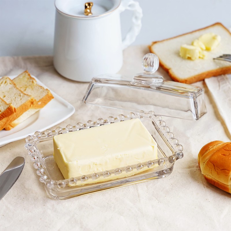 - Butter Dish with Cover - Clear glass cover protects butter from dust, pets and contaminants, keeping it fresh and sanitary every time you use it
