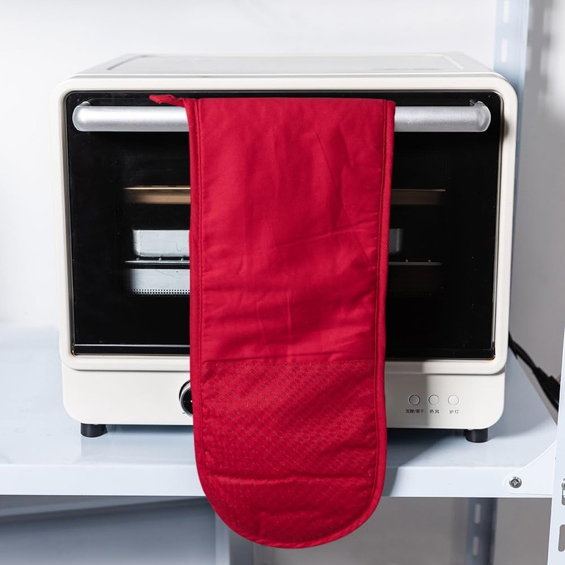 QFUNACCESS 7.5 x 32 Inches Heat Resistance Double Oven Mitt with Flexibility Cotton, UP to 450 F Heat Resistant (Red)