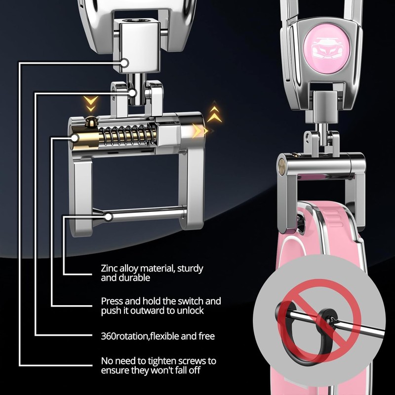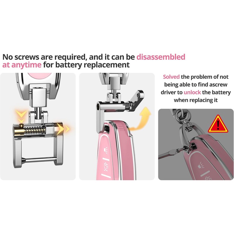 Military-grade reliability: The keychain is made of strong zinc alloy, which can be unlocked and locked without screws, which is very convenient and safe. Compared with traditional key fobs, you no longer have to worry about not being able to remove the key when the key is out of power because you can't find a screwdriver. This is a perfect solution to this problem.