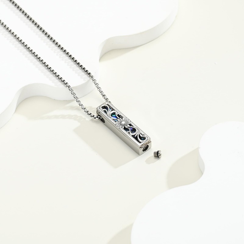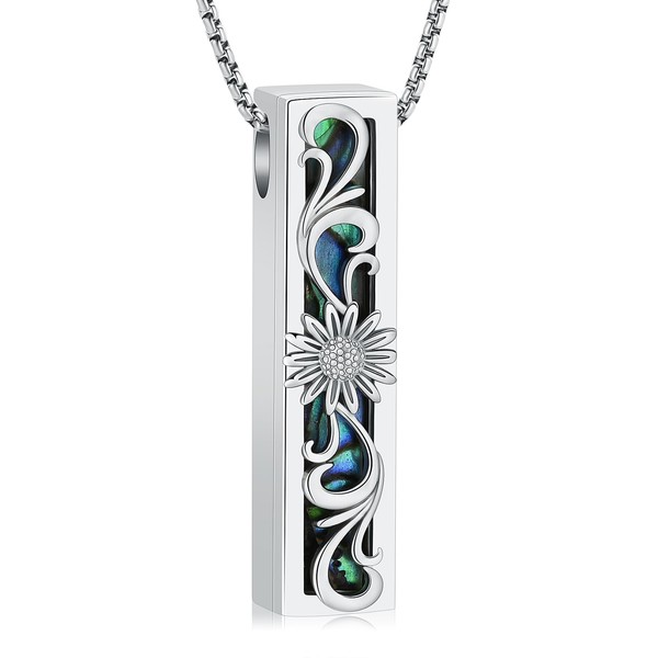 QGJNSGC Abalone Shell Urn Necklace for Women Men Tree of Life/Sunflower/Mountain Cremation Jewelry for Ashes Bar Urn Pendant Cremation Ashes Necklace Keepsake Loved Ones Memorial Gift (Sunflower)