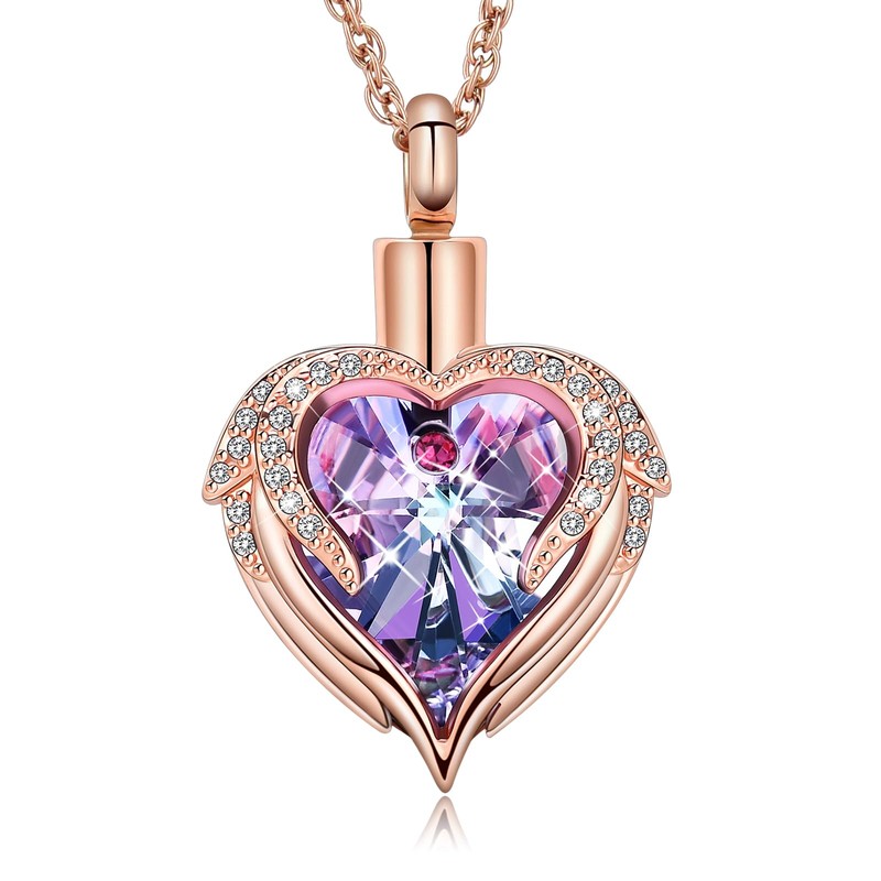 QGJNSGC Angle Wings Heart Urn Necklace for Men Women Cremation Jewellery Keepsake Memorial Lockets Jewellery Gifts Urn Pendant Ash Holder, Gemstone