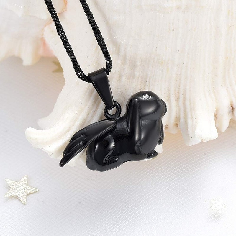 QGJNSGC Cremation Jewelry Bunny Rabbit Urn Necklace for Ashes with Angel Wing Ashes Pendant Stainless Steel Keepsake Memorial for Jewelry for Women Men Gift, Stainless Steel, Cubic Zirconia, black