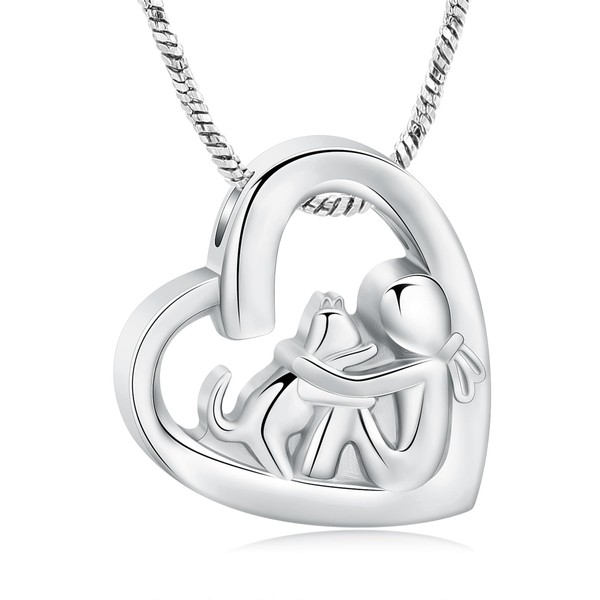 Heart Necklace for Ashes Stainless Steel Dog Cat Keepsake Cremation Jewellery Memorial Urn Necklace for Pet Human Ash Pendant