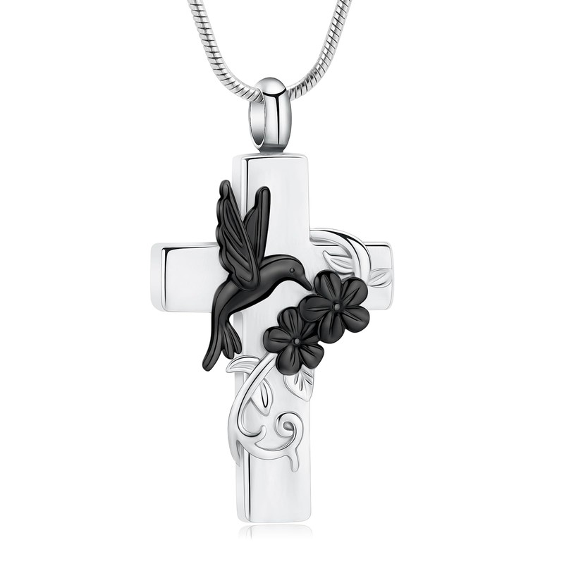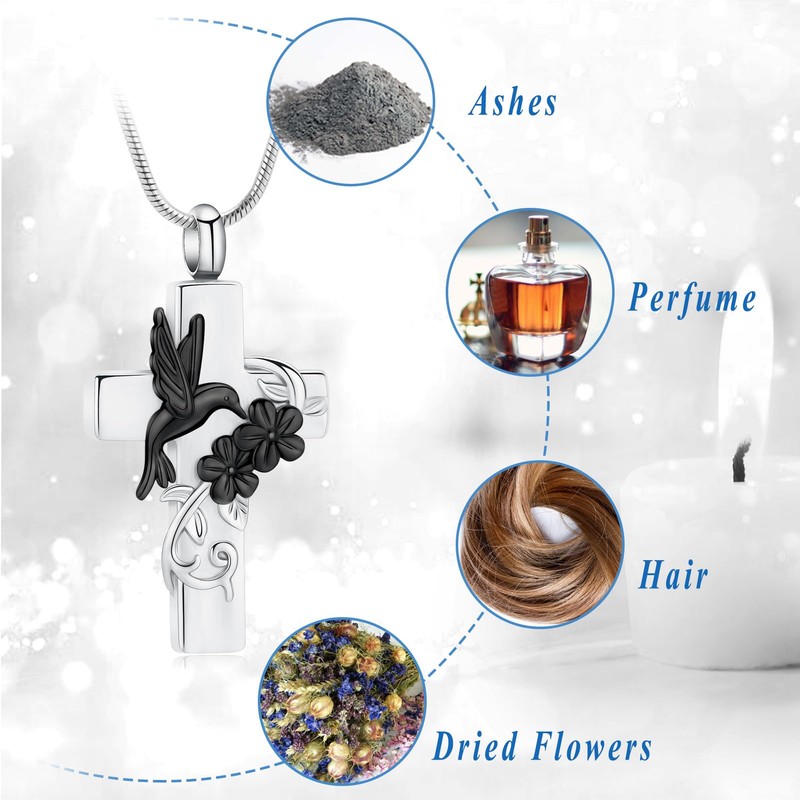 QGJNSGC Urn Necklace for Ashes Flower Ash Pendant Memorial Necklace Cross Hummingbird Cremation Jewelry Ash Keepsake Necklace Gift for Women Men, Stainless Steel