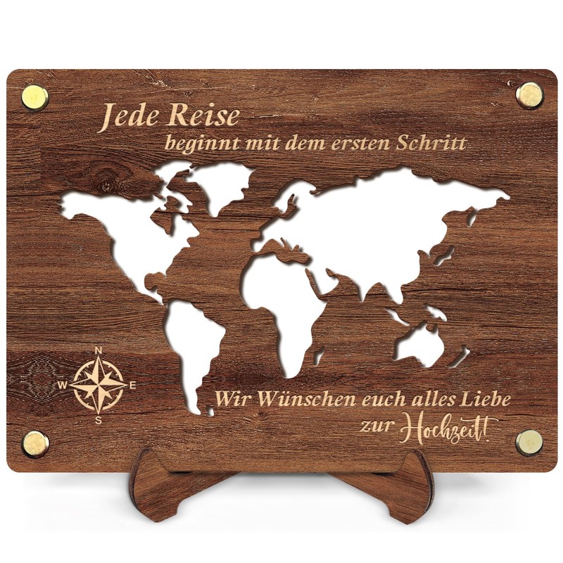 QHHENTOO Money Gift Travel – Money Gift Made of Wood with Stand – Travel Money Gift – World Map Holiday Gift – Travel Fund Holiday Fund Decoration