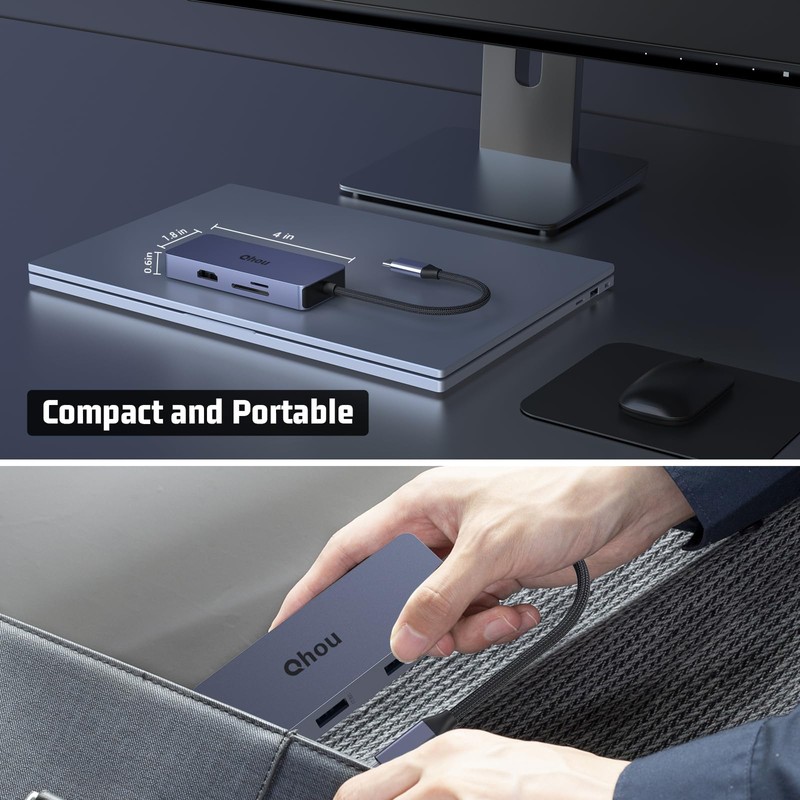 - Efficient data transfer: transfer data quickly with Qhou USB 2.0 ports of Qhou USB C HUB and SD/TF reader. Connect wirelessly and interference-free with 480 Mbit/s and access files in seconds with read speeds of up to 104 MB/s.