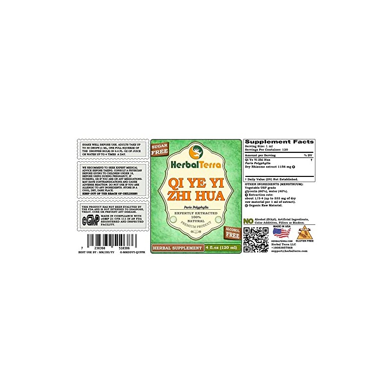 Qi Ye Yi Zhi Hua (Zao Xiu, Chong Lou), Paris (Paris Polyphylla) Glycerite, Dried Rhizome Alcohol-Free Liquid Extract (Brand Name: HerbalTerra, Proudly Made in USA) 4 fl.oz (120 ml)