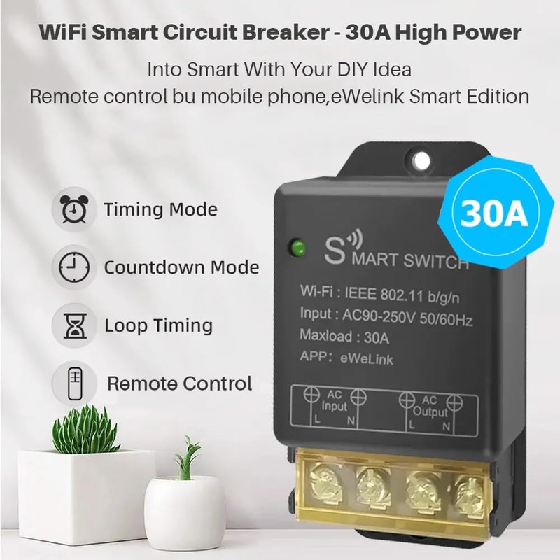 QIACHIP 30A Strong Power Wireless WiFi Intelligent Switch, Wifi Module for Smart Home Automation, ewelink App Remote Control, Timer, Compatible with Alexa & Google Home