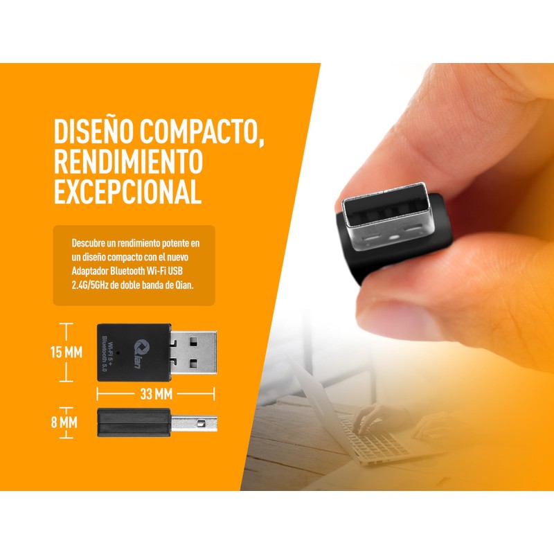 QIAN Adaptador Bluetooth Wi-Fi USB 2.4G/5GHz Dual Band (QYW-033WB)