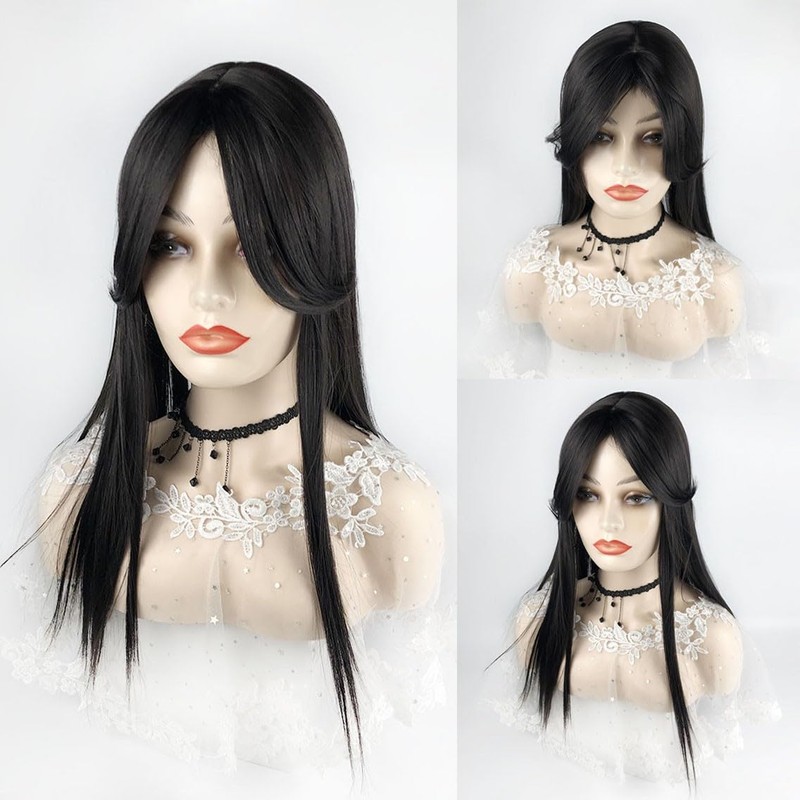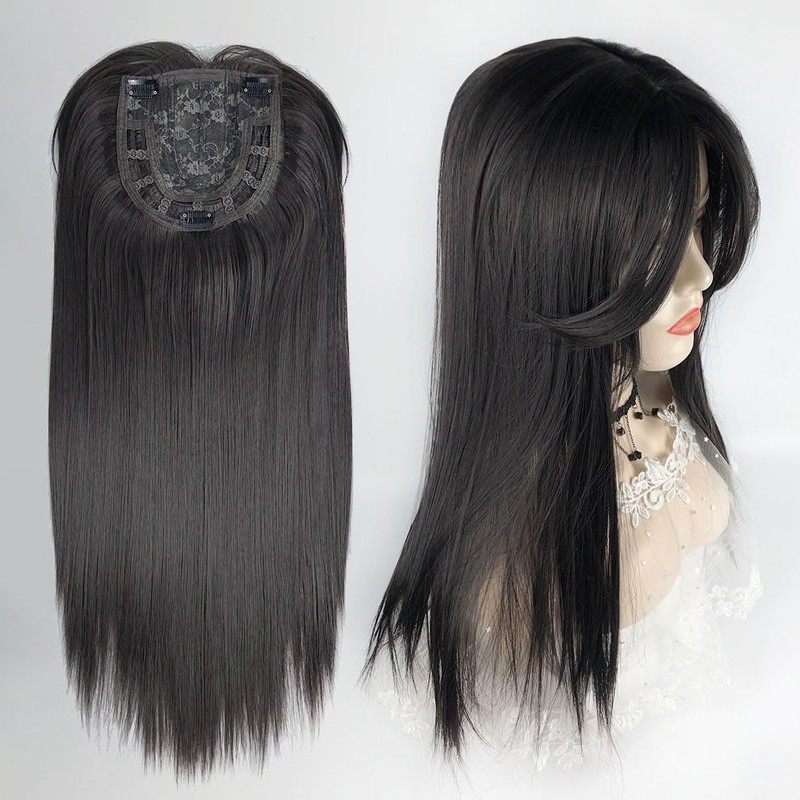 QIANCHUN Middle Part Forehead Hairline Replacement Wiglet 45cm Clip in Synthetic Topper with Bangs Seamless Hairpiece (Black Brown)
