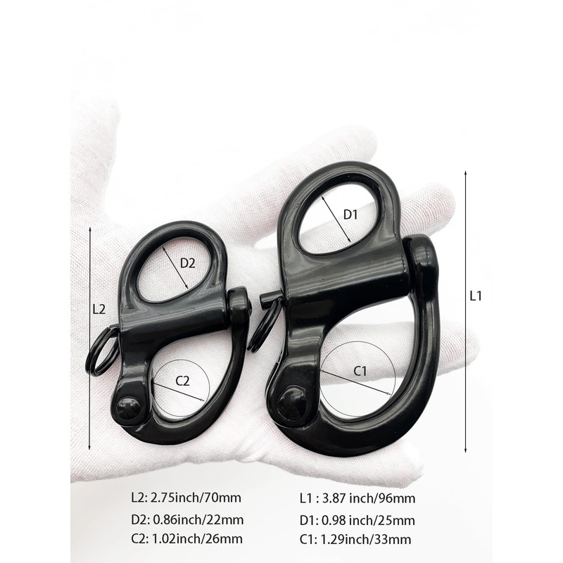 QIANJIEER Stainless-Steel Quick Release Shackle - Fixed Bail Snap Shackle, 3-3/4"(96mm), 2204 LBS, Ideal Connector for Sail Boats, Helicopters, Mountaineering, Rock Climbing, Swings, Pet Chains, etc.