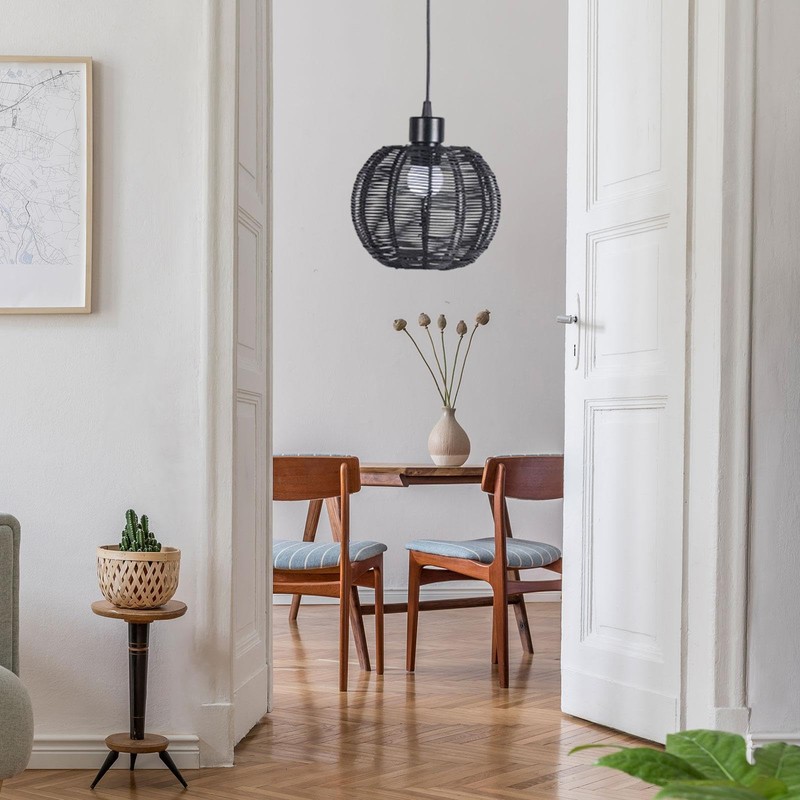 Qianly Woven Lamp Shade,Rattan Lamp Shade,Handmade Bohemian Lampshade,Rattan Woven Pendant Light Cover for Bedroom,Kitchen,Hallway, Black