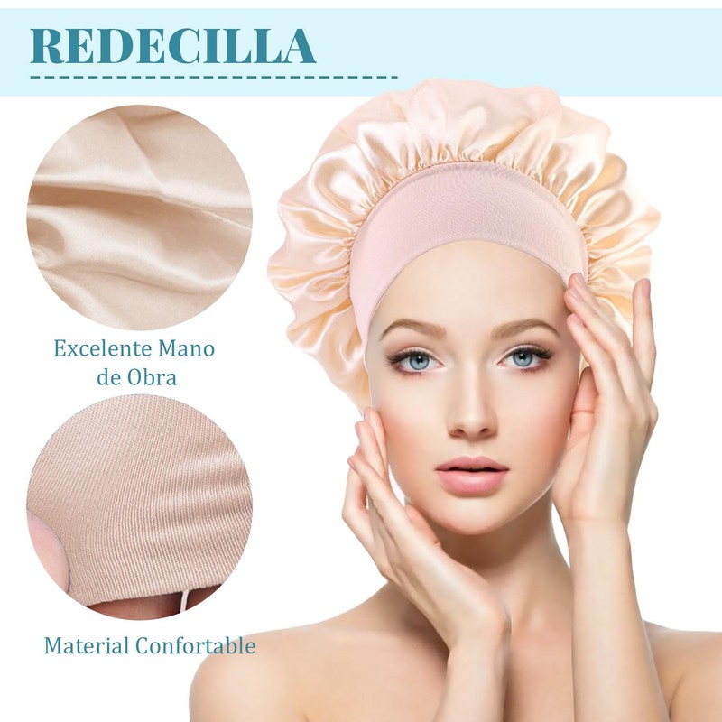 [EXCELENTE CALIDAD] - Este producto está hecho de tela de Seda de alta calidad con tejido de satén de alta elasticidad, adecuado para diferentes formas de cabeza. Suave, cómodo y transpirable, adecuado para el pelo largo, pelo despeinado, pelo rizado y muchos otros peinados, cuidar de su cabello.