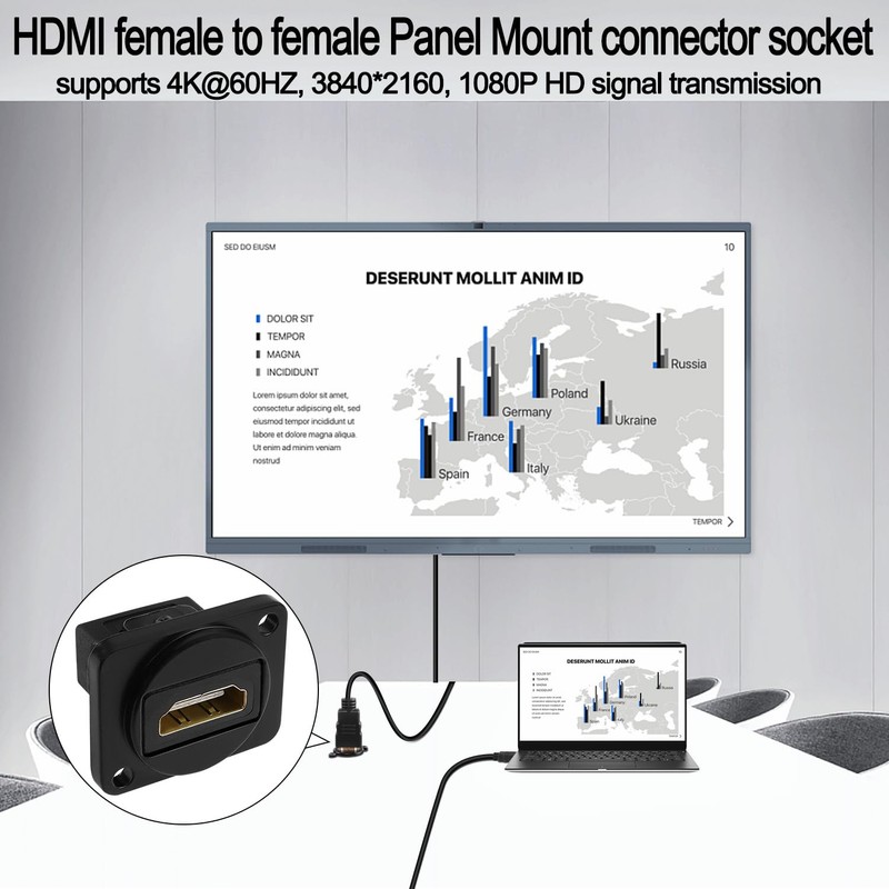 - 【Panel Mount】HDMI socket to socket Panel Mount Adapter. Standard XLR panel / D-panel mounting size, suitable for mounting on desktop, wall and equipment panel surfaces.