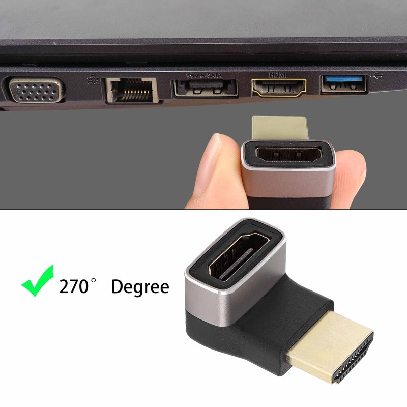 - ☆ HDMI 270 degree right angle adapter for extending HDMI cables in tight spaces, so that the cables fit snugly to the device so as not to damage the cables or device ports. extend their service life.