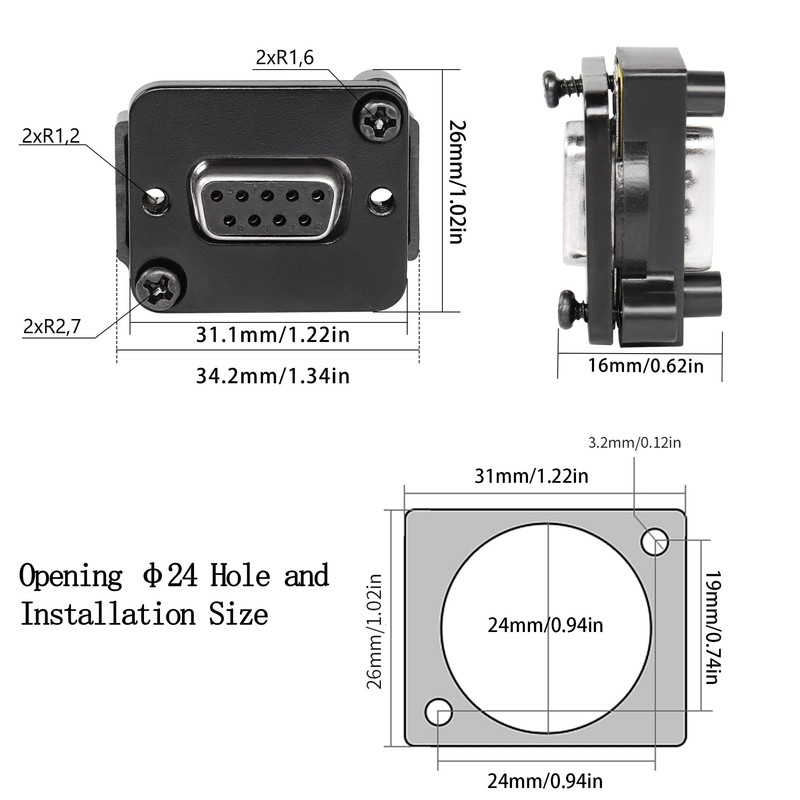 - ☆ RS232 F/M Panel Mount Pass-Through Connector, a reinforced and easy to install and use connection system, suitable for mounting on walls, floor sockets, desktops, rack panels, and equipment panels.