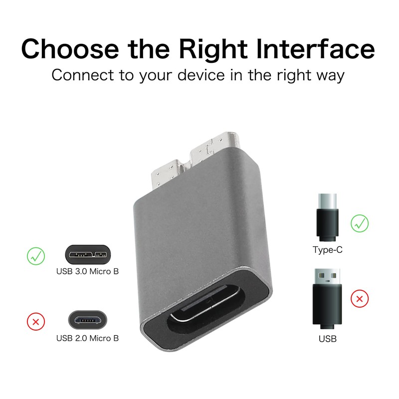 - USB 3.0 Micro B to USB C Adapter: Connects a computer/PC/laptop with a USB Type C port to an External Hard Drive, Smartphone or Tablet with a type-c male cable for data transfer& charging.
