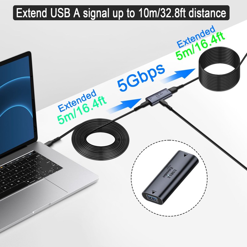 - 【10m Extension Distance】5Gbps USB Type C to USB3.2 Type A Signal Amplification Extender Adapter. Extends USB3.2 Type A signal up to 10m/32.8ft.