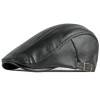 Qianuer Newsboy Hats for Men Leather Ivy Flat Cap Gatsby Driving Cabbie Hat Black