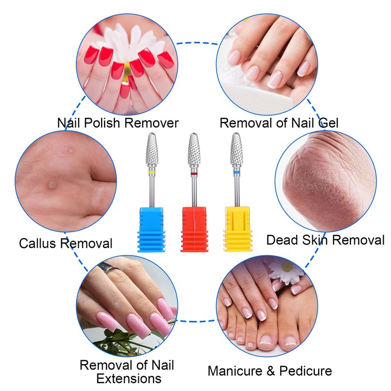 - 【Multi-color Coarseness and Fineness Level】To meet a wide range of nail care needs, our nail art tools come in three different colors: red, blue, and yellow. Each color represents a different coarseness and fineness level, giving you the flexibility to choose the perfect drill bit for sanding, polishing, or fine touches.