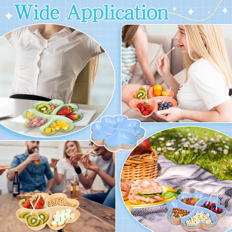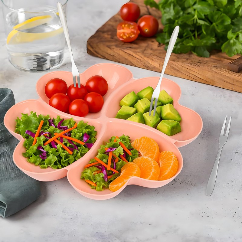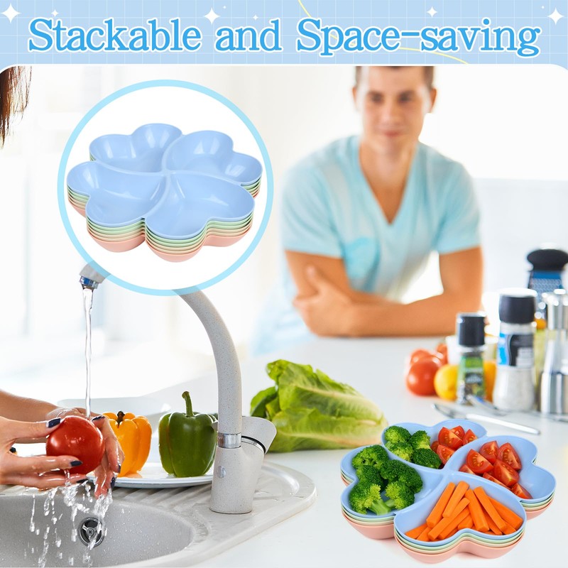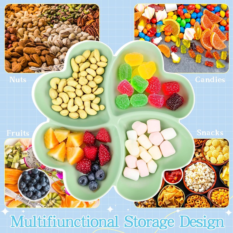 - HOCHWERTIGE MATERIALIEN: Snackteller mit fächern aus hochwertigem kunststoff gemacht, stark und robust, glatter Oberfläche, stabil, knicken nicht, laufen nicht aus und können wiederverwendet werden. Das Snackschale mit 4 Fächern hat ein vierblättriges Kleeblatt-Design in Uni-Farben,schön und großzügig, frisch und elegant, ohne den Spaß zu verlieren,das perfekt zu jedem Einrichtungsstil passt