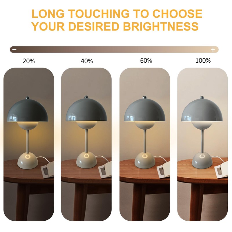 - 3-Color Stepless Dimming: This flower pot table lamp has three colors and adjusts the brightness level. Touch the top to switch three colors: Warm/Natural/White. Long press the top for unlimited brightness adjustment: 0%-100% brightness range, allowing you to easily change the brightness.