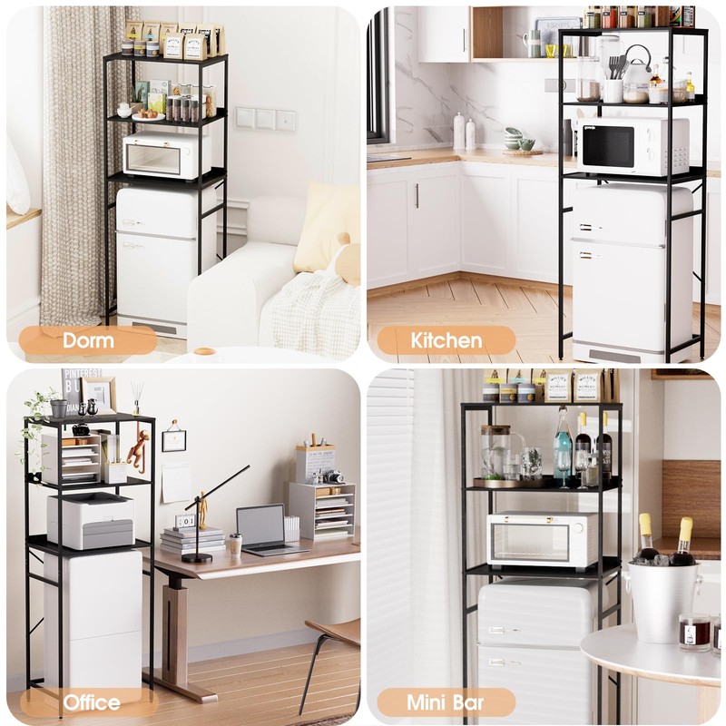 - MINI FRIDGE Shelf: 3 Tier mini fridge shelves for storing various sizes of microwave ovens and kitchen utensils. Modern style is more in line with your dormitory environment.