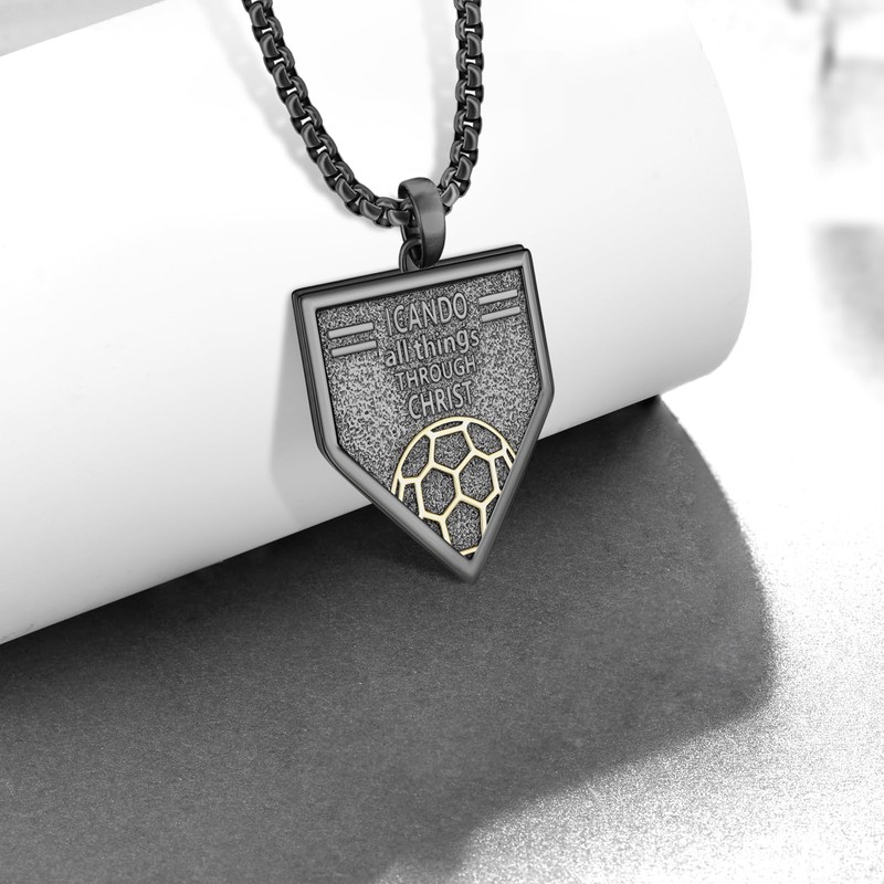 - Soccer Necklace Design:We combined inspirational Bible verses with soccer to create this meaningful soccer necklace with the inspirational verse “I can do all things through christ” engraved on the pendant. It will express your love of American soccer and religion.