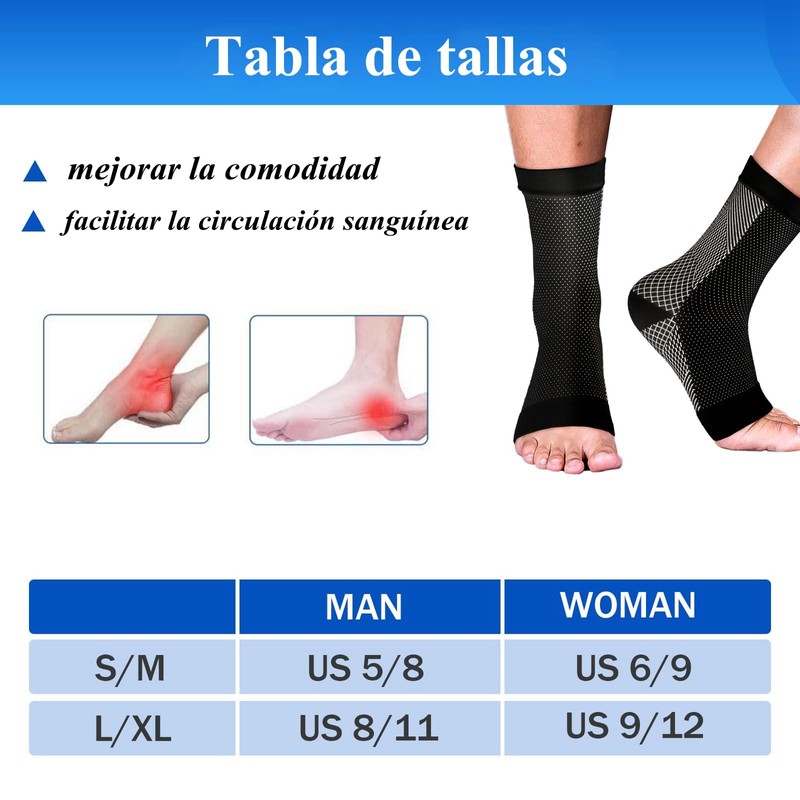 - 【 Soporte efectivo 】: Los calcetines de compresión proporcionan fibras de compresión de 5-12 mmHg, que aplican una compresión ligera en los pies. El soporte de arco dirigido estabiliza el ligamento de la fascia plantar.
