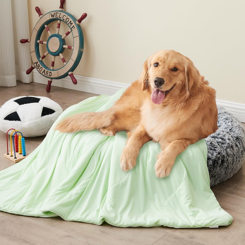 Qieryun Cooling Blanket for Dogs, Dog Blankets for Large Dogs, Q-MAX > 0.5 Cold Washable Dog Blanket, Soft Durable Self Cooling Cat Mat for Hot Weather, Green 40x50