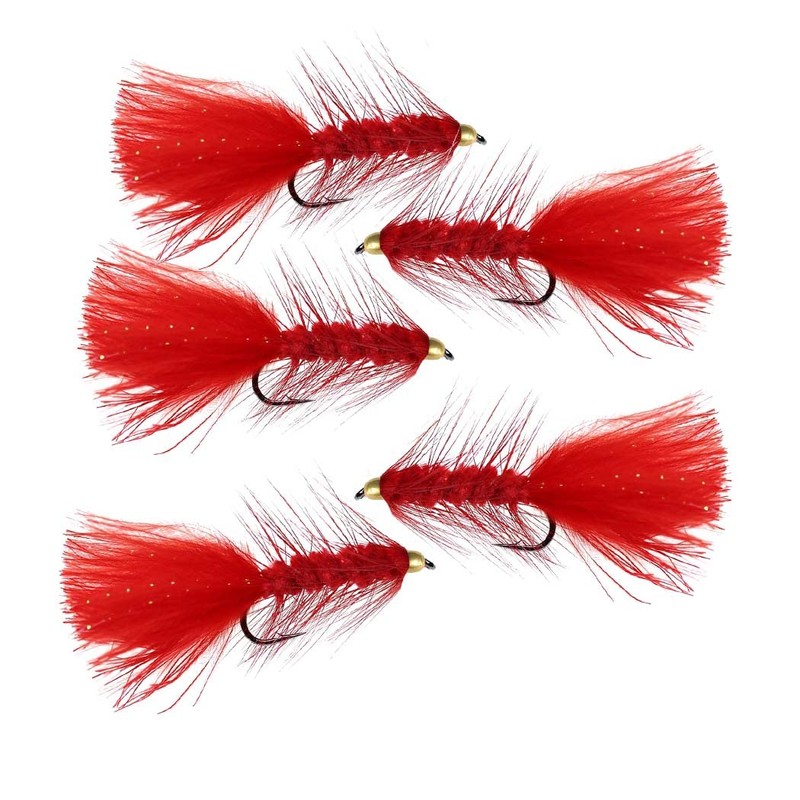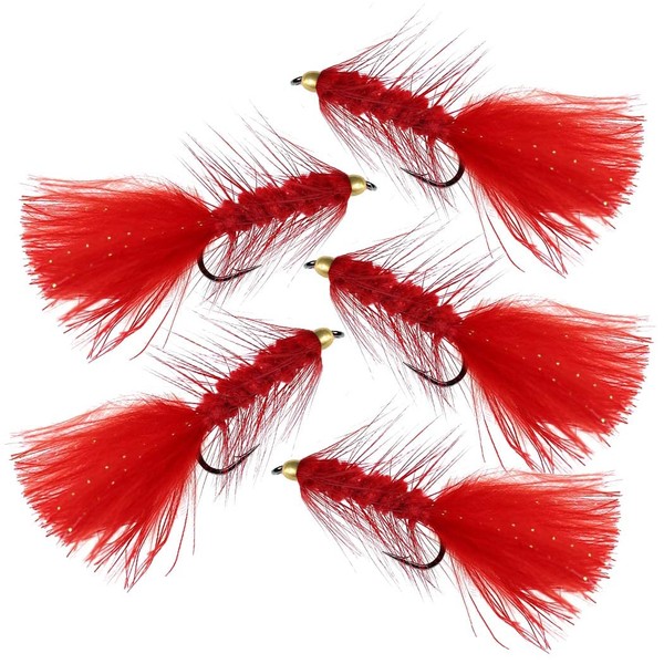 Qievcrme 10Pcs Wooly Bugger Fly Fishing Flies for Trout, Bass and Salmon-Streamer Assortment Wet Flies (Style A-Red)