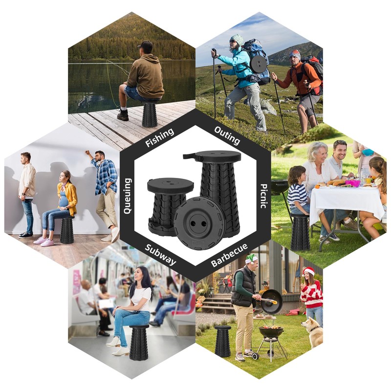 - 12 Height LevelsThe height change of our portable chair from fully closed to fully open is 2.56 inches to 17.72 inches. We have designed twelve heights, you are free to choose the height that makes you comfortable and use it. So our telescopic stool can be used by you and all your family.