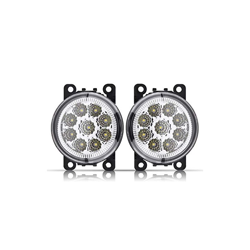 Qiilu Car Fog Light, 9 LED Car Round Front Fog Lamp DRL Daytime Running Light(White)