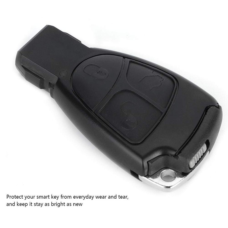 Qiilu Key Shell Cover, 3 Button Car Remote Key Fob Case and Blade for Benz