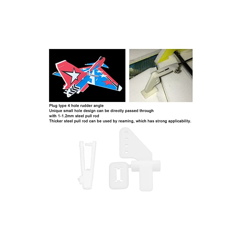 - Cuerno de control de avión Rc Gran aplicabilidad: ángulo de timón de 4 orificios tipo enchufe con un diseño único de orificio pequeño, que se puede pasar directamente a través de una varilla de tracción de acero de 1-1,2 mm, o una varilla de tracción de acero más gruesa después del escariado automático, que tiene una gran aplicabilidad.. Abrazadera de ala fija de modelo de vuelo KT