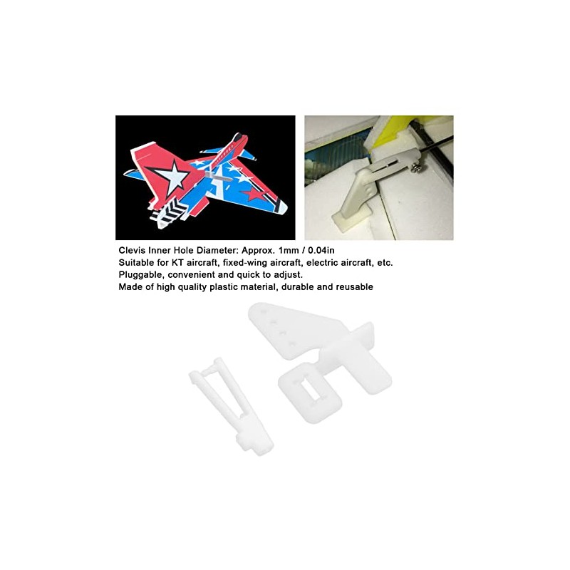 - Modelos aplicables de Micro Rc Clevis: excelentes accesorios para actualizar su modelo de control remoto, el kit de bocinas de control y horquilla es adecuado para Rcplane, Electriccraft, Foam Fixed Wingcraft.. Controlador de ángulo de timón de cuatro agujeros de 1mm