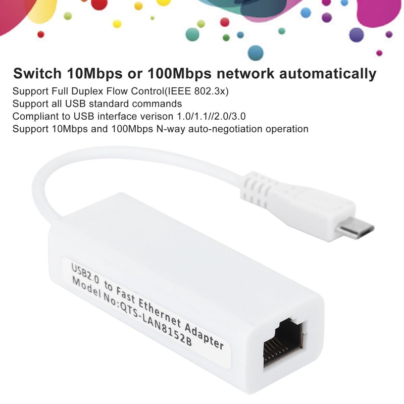 • Micro Usb Ethernet Otg admite operación Half Full Duplex 10 100Mbps, cambia la red de 10Mbps o 100Mbps automáticamente.