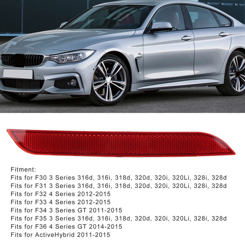 - Fitment---- Rear Bumper Reflector is suitable for F30 F31 3 Series 316d, 316i, 318d, 320d, 320i, 320Li, 328i, 328d, for F32 F33 4 Series 2012-2015, for F34 3 Series GT 2011-2015, etc. Please confirm whether the product is suitable before purchasing