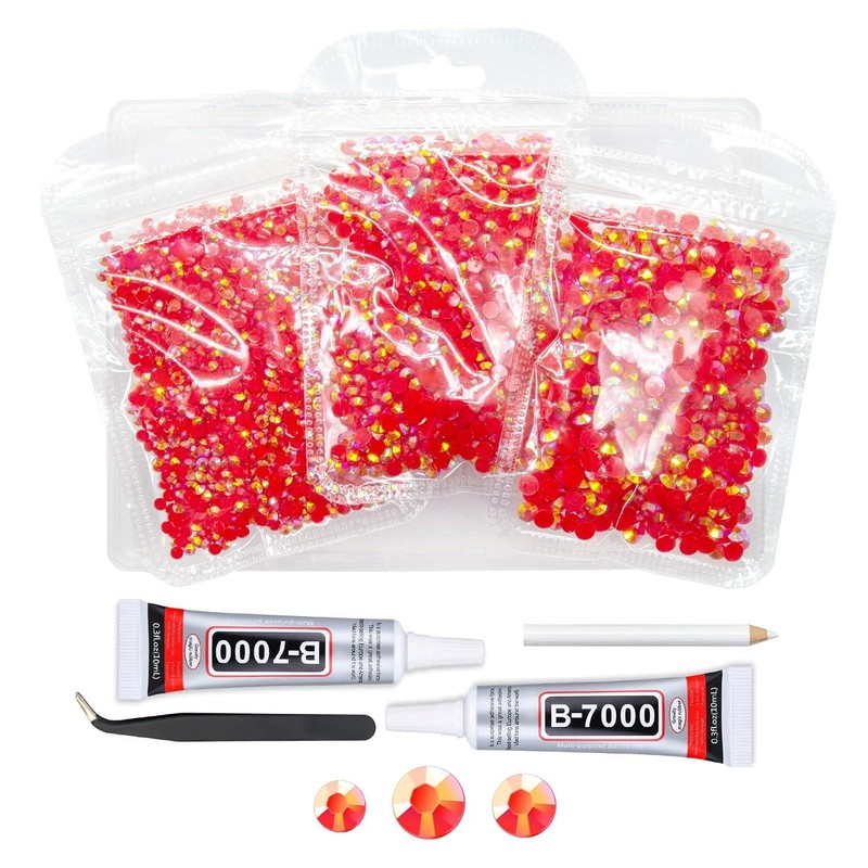 qiipii qiipii Red AB Resin Rhinestones with B7000 Jewelry Glue for Bedazzling 3mm- 5mm Flatback Jelly Stones Bulk for Crafting SS10- SS20 Diamonds Crystals Gems for Nails Face Makeup Tumblers Decor Crafts