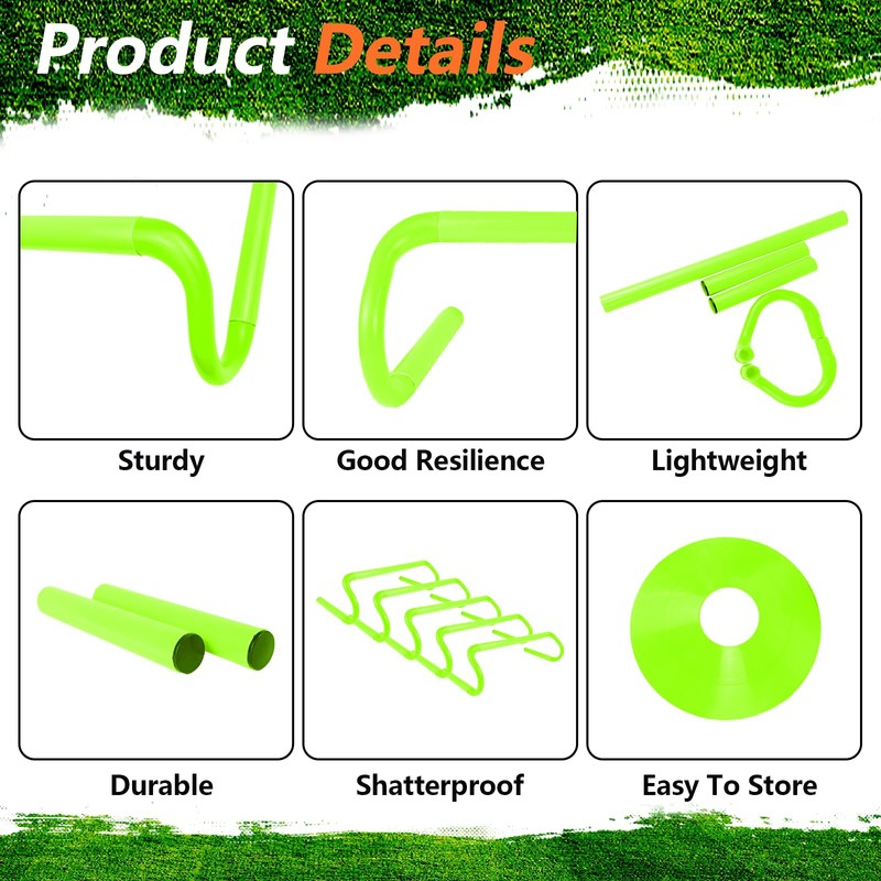 - Detachable and Portable: This agility training hurdles made of lightweight, durable, and weatherproof PVC, these agility training hurdles are built to last. These set are designed to be detachable for easy installation and portability for use in gym classes, training grounds, or clubs, the soft marker cone prevents injuries.