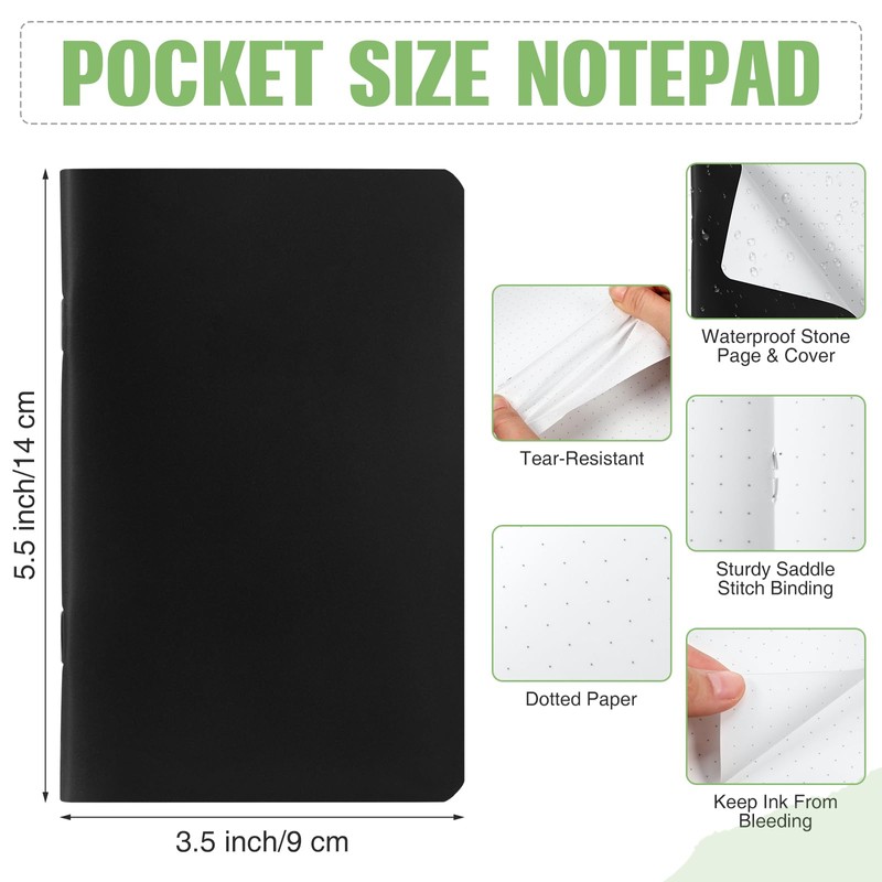 - Ideal Size: you will receive 6 packs of the small weatherproof notebook, which measures about 3.5 x 5.5 inches/ 9 x 14 cm, so you can stash the waterproof notepad in your pocket, or backpack for everyday carry, take notes while in the field or even as you're walking; The sufficient quantity will meet your daily needs, and you can also share them with your family and friend to use together