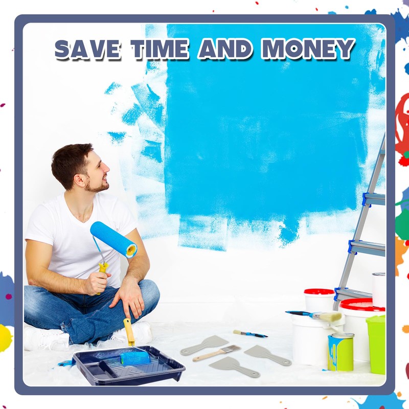 - Set Contents: paint roller kit include 9 Inch roller frame with 4 covers, 4 Inch Mini Roller Frame with 8 Covers, an extension pole, a plastic paint tray and 10 pcs disposable paint trays, a color separation paint brush, 4 different sizes cleaning knives