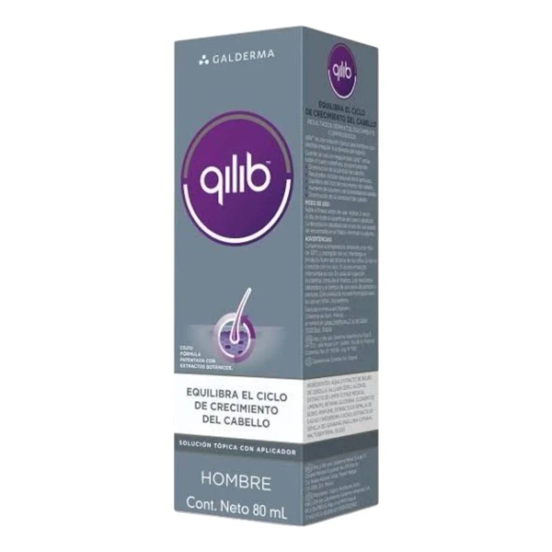 Qilib Tratamiento Caída de Cabello Hombre (80ml) Solución: Tratamiento diseñado para frenar la caída y estimular el crecimiento del cabello masculino. Ayuda a fortalecer los folículos para un cabello más denso.