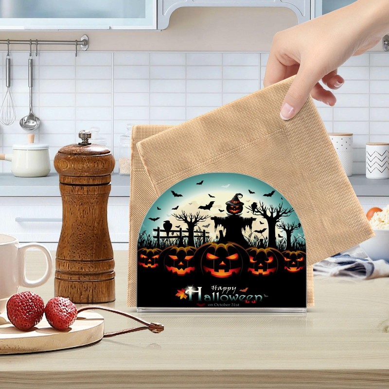 Qilmy Halloween Scary Pumpkin Napkin Holder for Tables - Modern Table Napkin Holder