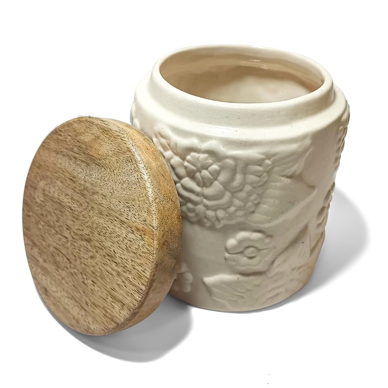 Qimacplus Pickle containers | Containers With Lids | Ceramic Container Set for Kitchen Storage | Convenient For Dining Table | Multi-Utility Storage & Containers | Pottery White (Pack Of 1)