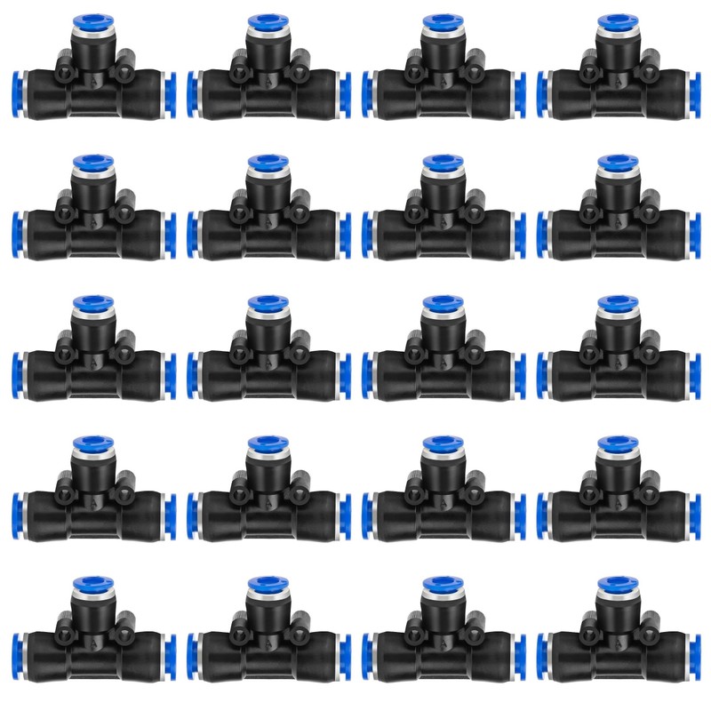 • Size: pneumatic connector T 8mm to 6mm, suitable for PU PE nylon air hose with outer diameter 8/6mm, 20 pieces T-PEG-8-6 couplings total for your daily needs.