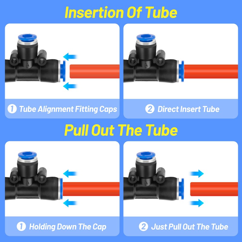 • EASY OPERATION Simple push-in design to connect to the pipe and ensure a secure connection. Simply insert the pipe into the bottom of the fittings and do not require additional sealing.